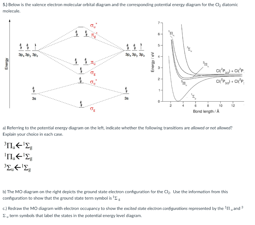 Question: (a) Draw a molecular orbital energy diagram for Cl2 and show which orbitals are occupied with electrons. (b) How many bands are expected in the ...