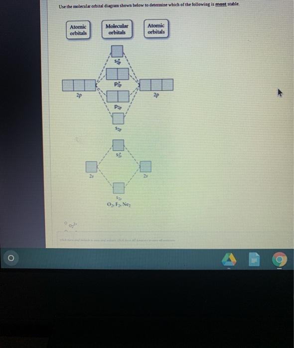 Solved Use The Molecular Orbital Diagram Shown To Determine Which Of The Following Is Most Stable Atomic Orbitals Molecular Orbitals Atomic Orbitals S2p Pip 2p 2p S2p Pzp