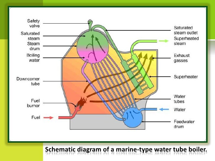 24.02.2012 · Let us draw a very basic diagram of water tube boiler. It consists of mainly two drums, one is upper drum called steam drum other is lower drum called mud drum. These upper drum and lower drum are connected with two tubes namely down-comer and riser tubes as shown in the picture. Water in the lower drum and in the riser connected to it, is heated and steam is …