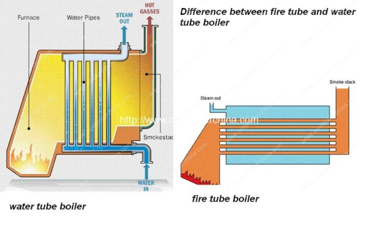 Water-tube boiler; Fire-tube boiler: Fire tube boilers are those boilers in which hot gases produced by the combination of fuel in the boiler furnace while on their way to chimney pass through a number of tubes (called fuel tubes or smoke tubes) which are immersed in water. Heat is transferred from the hot gasses to water through the walls of tubes. Example of fire tube …