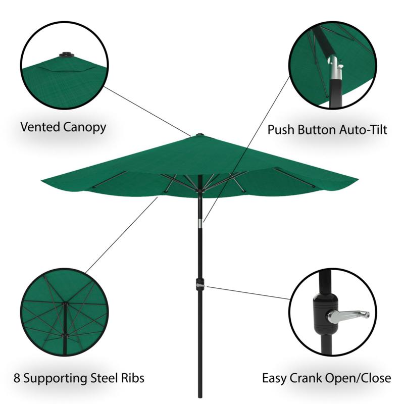 allen + roth 11-ft Tan Crank Offset Patio Umbrella with Base. The allen + roth 11-ft Offset Misting Umbrella features a handsome and warm wood-grain heat transfer pole and ribs. With EverTru fabric, the canopy is guaranteed to be fade resistant for 5 years. This umbrella gives you and your guests the ability to cool down with a gentle misting ... Within Market Umbrellas, the options for opening mechanisms include Crank lift system, Manual lift, Pulley and pin lift system and Push Button Auto-open. Is there a Natural product available in Market Umbrellas? Yes, we carry a Natural product in Market Umbrellas. Check out the Classic Wood 6.5 ft. Square Patio Umbrella in Natural Polyester.