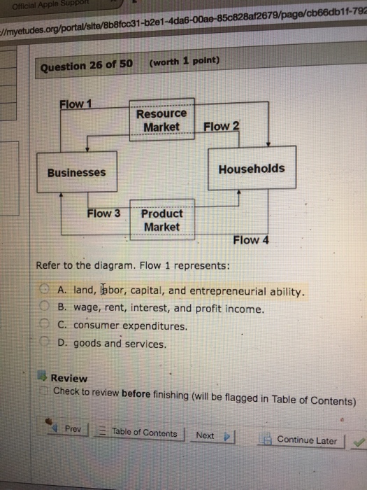 Refer to the diagram. Flow 1 represents. wage, rent, interest, and profit income.. Refer to the diagram. Flow 2 represents. land, labor, capital, and entrepreneurial ability. Refer to the diagram. Flow 3 represents. goods and services.. Refer to the diagram. Flow 4 represents Flow (1) represents: wage, rent, interest, and profit income. Image: Refer to the above diagram. Flow ( ... Refer to the diagram Flow 1 represents A wage rent interest and profit income B from ECO 2013 at Edison State Community College Image: refer to the above diagram Flow 1 represents. refer to the above diagram flow 2 represents. land, labor, capital, and entrepreneurial ability.