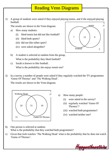 Venn Diagrams | Teaching Resources 2 Worksheets on drawing/reading Venn diagrams with increasing difficulty. Creative Commons "Sharealike" Reviews. 4.4. Something went wrong, please try again later. jhopk. 6 months ago. report. 5. Great resource, easy to follow. Empty reply does not make any sense for the end user. Submit reply Cancel. sbokhari. 8 months ago ...