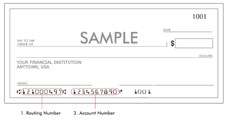 How to Arrange and Check a Fractional Routing Number ... The routing number appears in two places on a check: on the magnetic ink character recognition strip at the bottom of the check and in fractional form at the top of the check. The fractional form of the routing number contains only eight digits and is used to manually process checks. Parts of a Check and Where To Find Information The routing number, found at the bottom left of your check, serves as an "address" for your bank. With that number, other banks can get in touch with your bank and collect funds from your account when you write a check. How to Find the Routing Number and Account Number on ... The easiest way to find your routing and account numbers is to look at the bottom of one of your checks. These numbers are also preprinted on the deposit slips that are usually included with your... Navy Federal Routing Number | United States - Wise The routing number for Navy Federal for domestic and international wire transfer is 256074974. If you're sending a domestic wire transfer, you'll just need the wire routing number in this table. If you're sending an international wire transfer, it will be a 'for further credit' transfer. The money will go through an intermediary bank and get ...