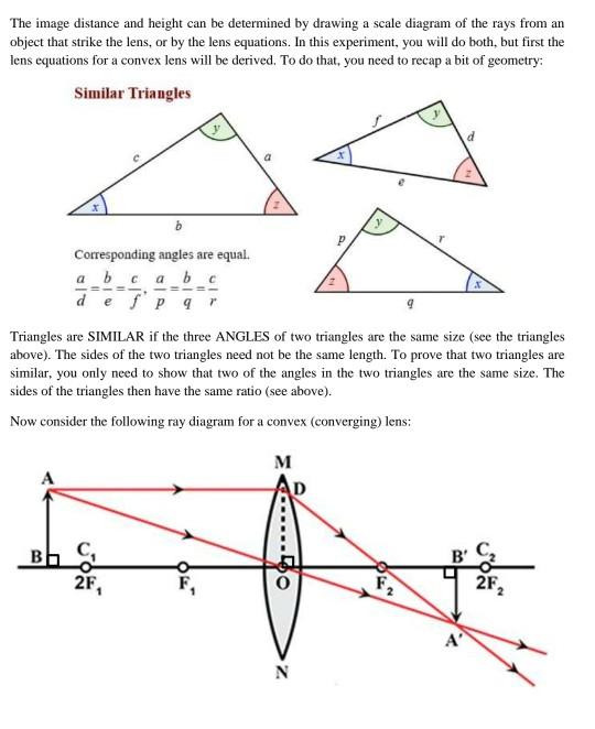Solved 2.) a) Draw a ray diagram for the following ... a) Draw a ray diagram for the following situation involving a converging lens. The a) ray tracing needs to have the three principal rays. Also, draw the image on the ray diagram where the three principal rays converge. Refer to Section 26.4 of Serway & Jewett for further guidance on how to construct principal rays r Use a ruler to measure the ... OneClass: (a) Draw a ray diagram for the following ... (a) Draw a ray diagram for the following situation involving a converging lens. The ray-tracing needs to have three principal rays. Also, draw the image on the ray diagram where the three principal rays converge. (b) Use the ruler to measures the object distances, image distances, and focal lengths of the ray diagram. then, verify that your ... Ray Diagrams for Lenses - Georgia State University Ray Diagrams for Lenses The image formed by a single lens can be located and sized with three principal rays. Examples are given for converging and diverging lenses and for the cases where the object is inside and outside the principal focal length. The "three principal rays" which are used for visualizing the image location and size are: Solved a) Draw a ray diagram for the following situation ... a) Draw a ray diagram for the following situation involving a converging lens. The ray tracing needs to have the three principal rays. Also, draw the image on the ray diagram where the three principal rays converge. b) Use a ruler to measure the object distances, image distances, and focal lengths for the ray diagram.