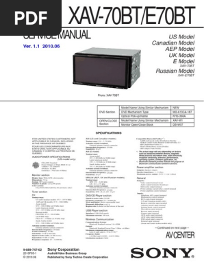 Sony Xav 60 Security Code Hi l have lost my manul for my sony xav 60 and l have put it in a new vehicle and now it is asking m... sony xav-60 wiring diagram. Nov 20, 2018 · XAV-60 / XAV-E60 (serv.man2) service manual will guide through the process and help you recover, restore, fix, disassemble and repair Sony XAV-60 / XAV-E60 (serv.man2) Car Audio. Information contained in service manuals typically includes schematics / circuit diagrams, wiring diagrams, block diagrams, printed wiring boards, exploded views ... RU UA. XAV-E60. ©2010 Sony Corporation. Myльтимeдийная cистeма Сделано в Таиланде. Внимание. Double DIN In-Dash 6.1" TFT-LCD Touchscreen Monitor w/ DVD, CD, MP3 Receiver with USB/iPod ControlsGeneral features:DVD receiver with internal amp (17 watts...