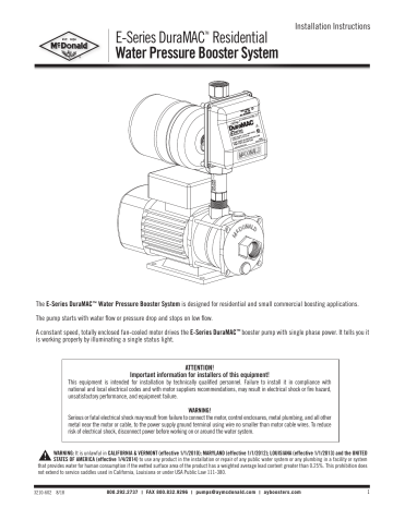 PDF Universal Booster Pump Installation the LA01N booster pump it manufactures, including all parts and components thereof, to be free of defects in material and workmanship. The warranty commences on the date of installation of the pump and shall remain in effect for a period of twelve months, but in no