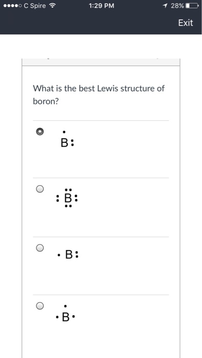 Which lewis electron dot diagram represents a boron atom ... Which lewis electron dot diagram represents a boron atom in the ground state. Chemistry. Answer Comment. 2 answers: nignag [31] 11 months ago. 7 0. Boron is an element in the periodic table with a symbol B 5 is its atomic number. Its atomic mass is 10.81 grams per mole. The electron configuration of the said atom is [He] 2s2 2p1 which means ...
