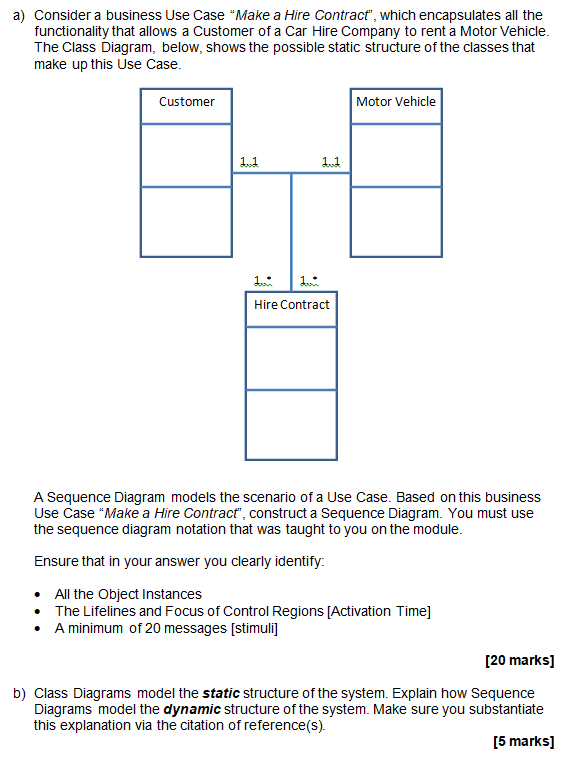 The focus in a sequence diagram is on. SYSTEM AND DESIGN CHAPTER 7 Flashcards - Quizlet 12. The focus in a sequence diagram is on _____ a. How actors interact with objects to realize a given use case b. Messages sent by actors to other objects c. when an object is being created d. when messages are being destroyed e. time ordering of messages being passed between objects The focus in a sequence diagram is on a How actors ... 12. The focus in a sequence diagram is on _____ a. How actors interact with objects to realize a given use case b. Messages sent by actors to other objects c. when an object is being created d. when messages are being destroyed e. time ordering of messages being passed between objects Ans: e Unified Modeling Language (UML) | Sequence Diagrams ... A sequence diagram simply depicts interaction between objects in a sequential order i.e. the order in which these interactions take place. We can also use the terms event diagrams or event scenarios to refer to a sequence diagram. Sequence diagrams describe how and in what order the objects in a system function. Purpose of Sequence Diagrams and Basic Steps to Create One The focus is more on the order in which messages occur than on the message per se. However, the majority of sequence diagrams will communicate what messages are sent and the order in which they tend to occur. 1. Lifelines When drawing a sequence diagram, remember that lifeline notation elements are placed across the top of the diagram.