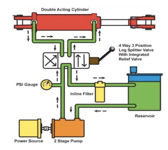 Log Splitter Hydraulics and How It ... - Cylinder Services Inc The Log Splitter Hydraulic Circuit. Most log splitters use a hydraulic cylinder ( like these) to push a cut piece of log into a sharpened wedge, which splits it. The cylinder is driven by hydraulic oil, under pressure, produced by a hydraulic pump. An engine, or electric motor, drives the pump shaft, and supplies the power for the system.