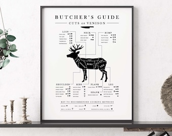 Venison Cut Chart - Etsy Butcher cuts print, meat cut kitchen wall art, beef pork chicken diagram chart poster, Shown in Charcoal color, CHOOSE YOUR COLOR AldariArt (1,705) $13.00 FREE shipping BRITISH Venison butcher chart, cuts of meat, etching style print. All sizes HannahTurpinDesigns (162) $25.50 FREE shipping Angus Beef Butcher Chart Laminated Poster ShopIconicArts